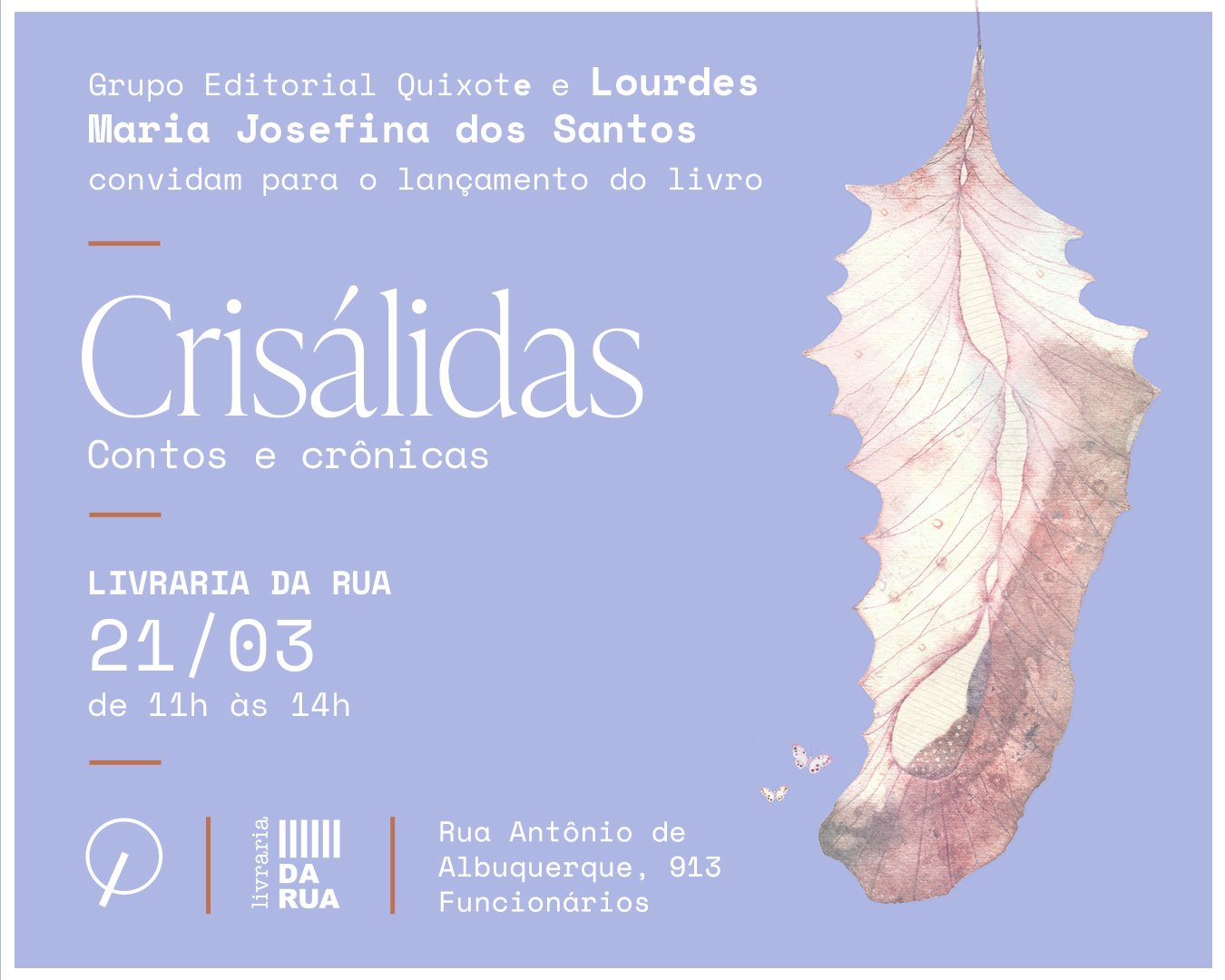 Ao leitor, de Crisálidas: contos e crônicas de Lourdes Maria Josefina dos Santos, novo lançamento do Grupo Editorial Quixote, sobram opções para seguir nessa viagem. Voe.